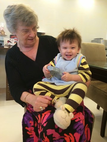 因為工人放假,我們聖誕節要留港照顧動物,所以嫲嫲亦從英國過來陪Keon過聖誕節!住了三個星期~嫲嫲買了個玩具搖控器給他。他大愛~
