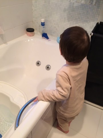 當我們教水給他沖涼時,他亦懂自己放自己的玩具又用品入水盤內,好聰明啦~