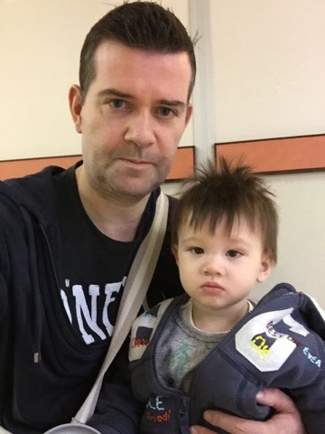 Boxing Day 爸爸要帶他到醫院,醫生給了抗生素~最重要沒有什麼大礙。最開心是他並沒有因這事件而不喜歡狗狗~