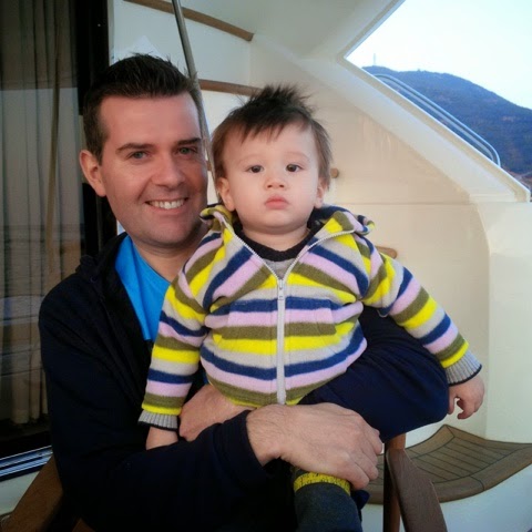 體重10kg,83cm高,絕對比同年紀高。很久沒有帶他出海,但當天也頗大風。