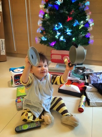 爸爸特意買了棵聖誕樹,又佈置,想他過得更有氣氛。爸爸買了一套玩具煮飯仔給他,是他最喜歡的(難道遺傳了媽愛煮飯的天份)?