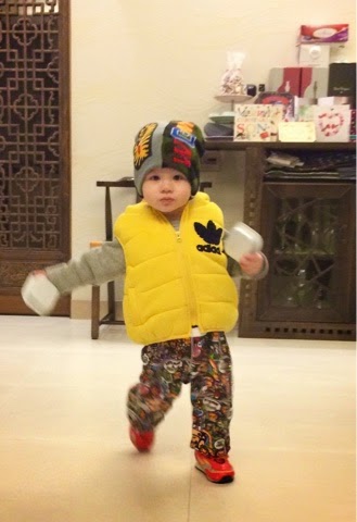 他已經不再扒,喜歡走來走去,但仍不太穩。家裡得角位都要加保護墊。