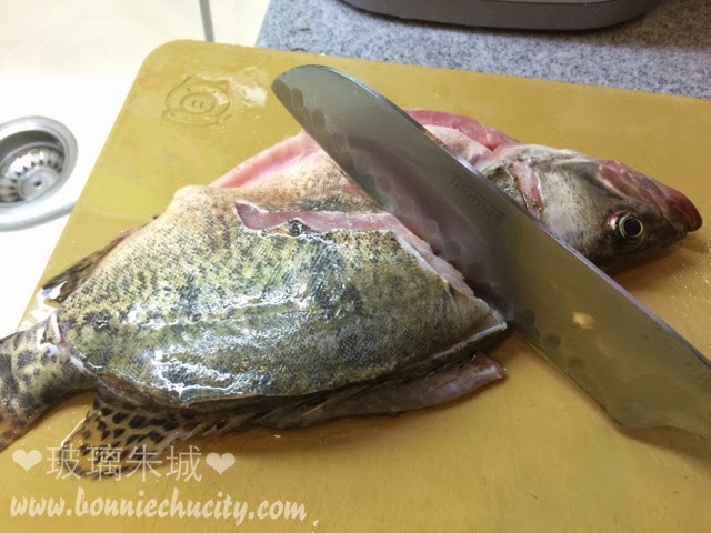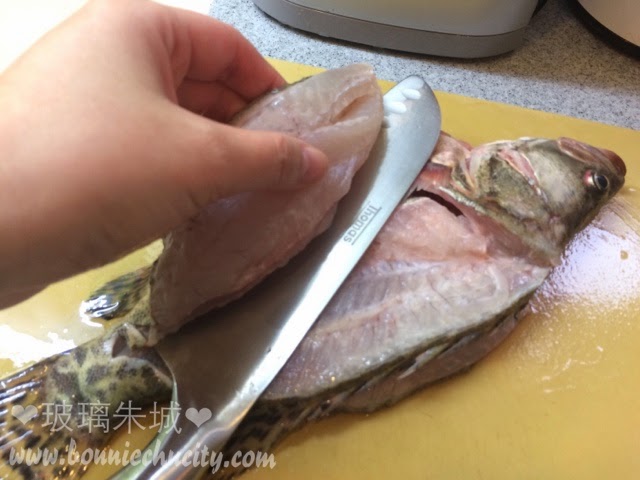 1)桂魚先洗淨,起肉。從腮邊切下去。