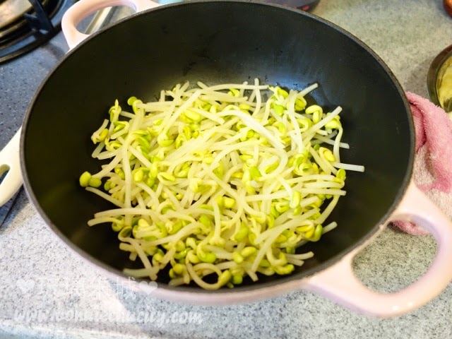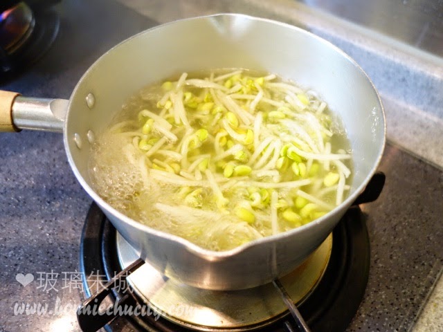 13)另一邊用滾水把大豆芽煮熟,約需4、5分鐘。