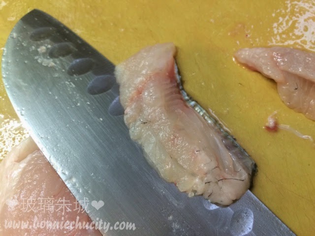 4)再向後再切一刀,這次要切斷,便成一塊魚片。如是者繼續⋯