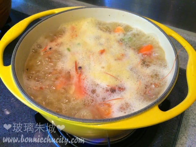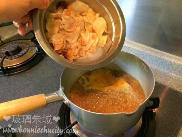 11)湯滾後加入蚌片,隨即馬上熄火。