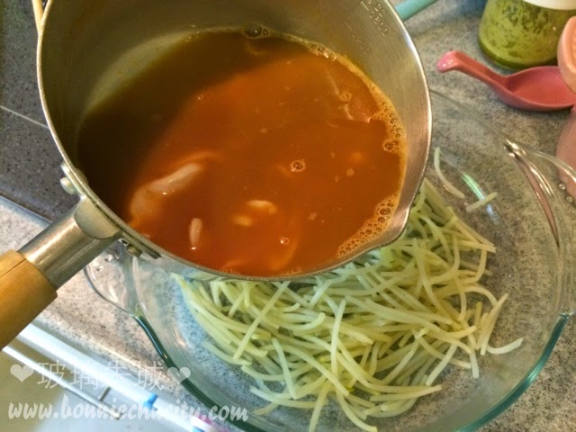 13)灑些芫荽蔥上面,即成!用小碗連湯連銀芽一起吃,超鮮味~