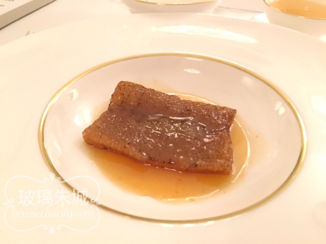 脆皮婆參先用蝦米水去發,再用上湯去炆,食前再略煎香,有口感得來又勁入味,招牌菜式之一。