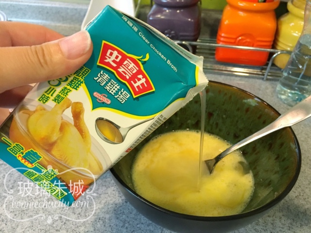 在我食譜書內,曾教大家蒸水蛋不老的方程式。「約130ml雞湯配1隻雞蛋,無論你蒸多久水蛋仍是很滑」。一盒史雲生方便裝雞湯是250ml,所以放2隻蛋,如此類推⋯