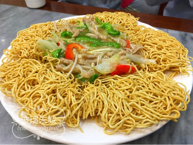 去到見老闆娘,叫她們選最拿手的出來嚐嚐,她首先點了這個「肉絲炒麵」。叫炒麵其實應該是炸,他們用潮式兩面黃的做法,麵質跟一般竹昇麵的質料有點分別(應該是麵粉的比率不同)。吃下去十分鬆化、入口即融。口感十分特別,必食推介。