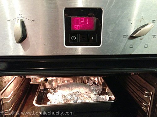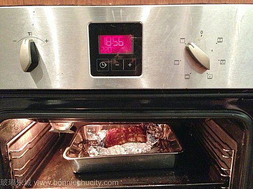 6)放入焗爐用底面火150度先焗約1小時(若肉比較厚可以多焗15分鐘)。