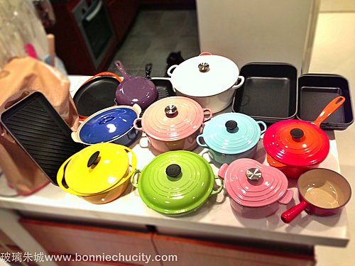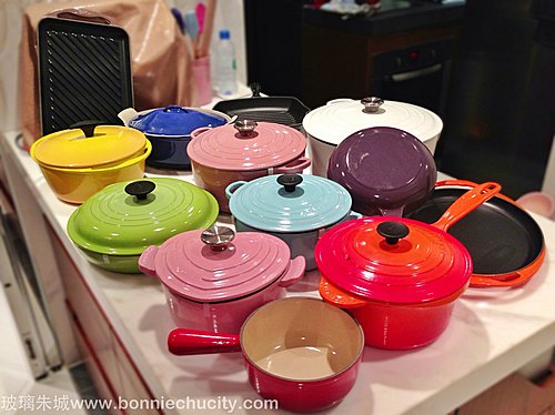 見大家也將自己的收藏分享,有一天也叫工人姐姐搬出所有鑄鐵具出來拍個大合照.我自己喜歡儲不同的顏色,及不同size 的煲.不會盲目重覆,是比較理性的(自己說自己理性即是不理性,哈哈