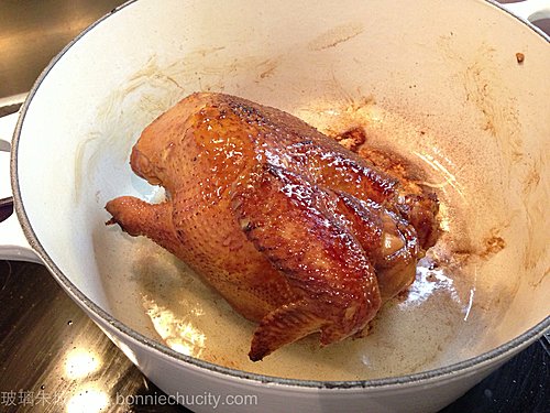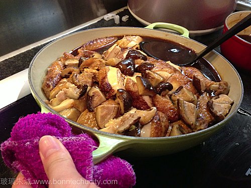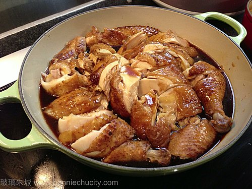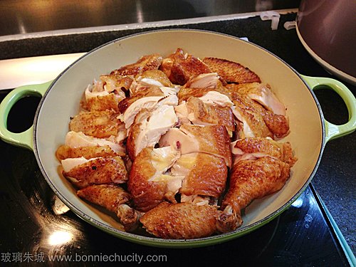 10)冷卻過的雞斬件後回鍋,酒樓會用砂鍋,我用Le Creuest 26cm buffet!