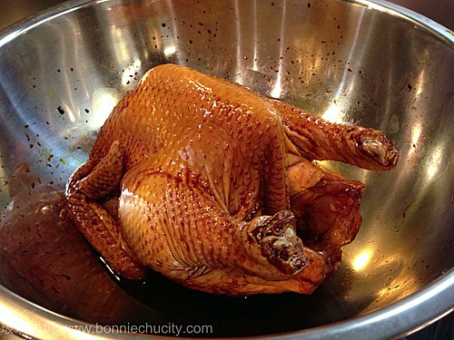6)煮完的雞拿起,放入雪櫃冷卻半小時.