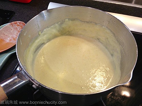 2)煮好了的忌廉便是白汁了.(一定要慢火不要燒焦)
