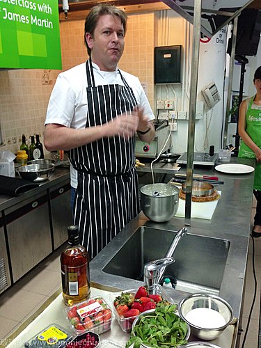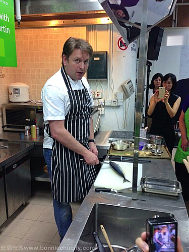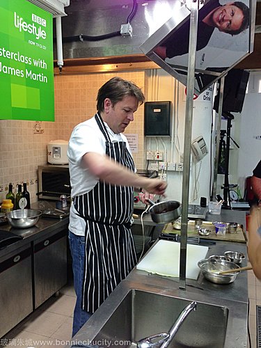 .自己一直也有看他的節目,由其是回英國探親時,逢星期六早上看他的 " Saturday Kitchen " ,喜歡他做菜簡單得來又有創意.今次他專程來港宣傳他即將在5月4日6時45分推出的新飲食廚藝節目 " James Martin's Mediterranean " ,當然不會錯過去跟他見面和偷師的機會.