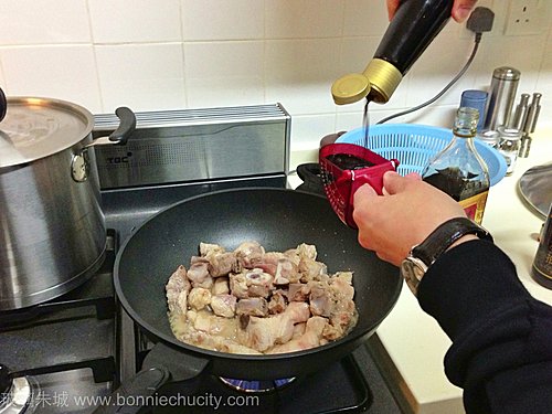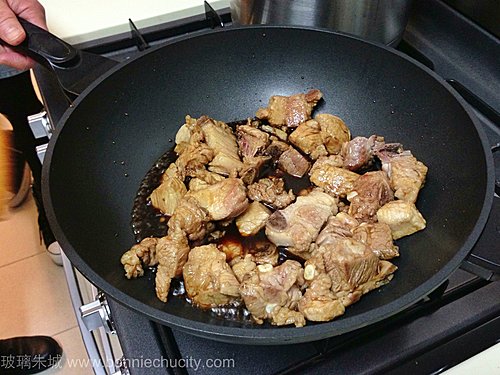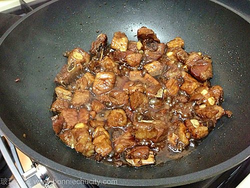 3)煎香後的排骨,加入所有調味料.