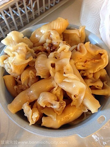1) 花膠不用洗放蒸爐蒸半小時,再洗淨,用冰水浸著放雪櫃過夜。