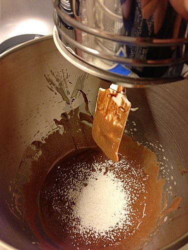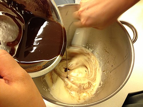 1. 將焗爐預熱至190℃,朱古力切碎與牛油隔水加熱至煮溶; |