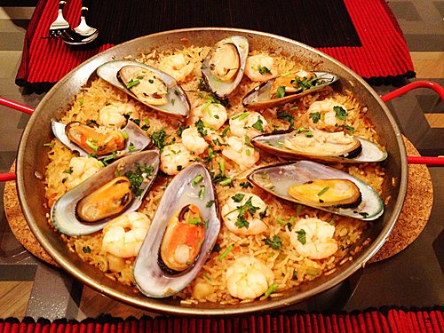 西班牙的海鮮焗飯 Paella 一向是我的至愛, 但好吃的往往難找及好貴. 不如, 就自己在家煮啦...其實, 不太難啦.