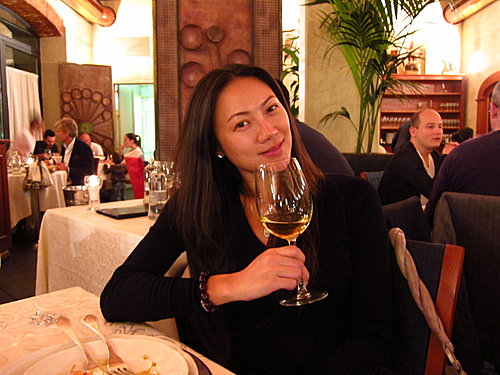 ) 左一是甜酒, 而右一的Balifico 是 Super Tuscans 的. Super Tuscans 是打破傳統混入法定葡萄以外葡萄如 Cabernet Sauvignon, Merlot 和 Syrah 等法國特色的葡萄一起釀製的紅酒. 中間兩枝都是稱為 Chianti Classico 的紅酒, Chianti Classico 的條件是首先葡萄要於 Chianti 區種植 ( 但酒廠 Ruffino 己打破了這個傳統...), 而法定葡萄為最少為 75% 至100% 的 Sangiovese 為主, 而 Trebbiano Toscano 最多不可多過 10%, Malvisia del Chianti 不可多過 6%, 亦可加入 Merlot, Cabernet Sauvigno 等葡萄, 但總容量不可多過15%. 所以是比較原意大利口味的酒, 本人十分喜愛. 右二的是 Chianit Classico Riserva, 稱為 Riserva 意思是最少比普通 Chianit Classico 多陳存2至3年才可推出市面. 本人最喜歡是左二的 Coltassala, 是人手採摘, 葡萄也是頂級的. 在當地買只要港幣三百多元, 香港Citysuper拿了他們的代理, 賣五百多啦....