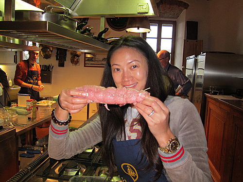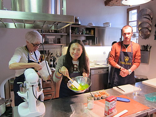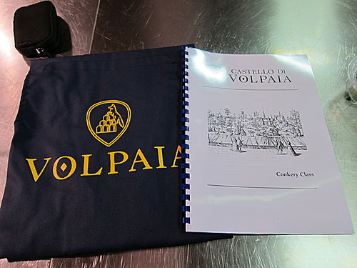 第四天, 喜歡紅酒及煮食的我, 十分期待著今天, 因為我安排了去Chianti 的VOLPAIA 酒莊的 lunch Chianti style cooking class 同 wines tasting. 由酒店駕車到酒莊, 大約一小時十五分鐘. 十時到達, 即刻開始煮我們的午餐. 附送圍裙及食譜.