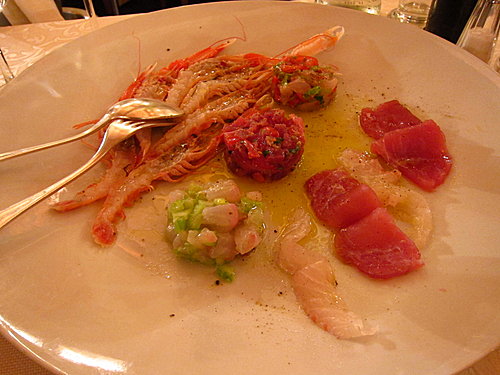 我們選了廚師是日推介, 全由廚師發板. 頭盤又是我喜愛的 RAW SEAFOOD.