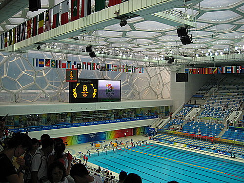 水立方內一條參賽者通道, 相右手面是比賽場館, 左手面是練習池...