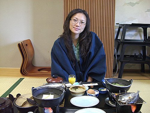 八時半起床, 往大廣間用早飯. 他們的早餐也十分豐富啦. 有溫泉玉子(蛋), 豆腐湯, 粥, 麵豉湯等等...