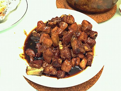 上一回說到,我們到M先生的家中名為 House warming,實為踢館要試一試他的手勢.他除了即場示範【胡椒蝦】外,還有這味【糖醋排骨】.又是簡單易煮.偷師完又跟大家分享一下. 材料: 排骨 --- 1斤半(斬件) 調味料: 紹酒 --- 60ml 豉油 --- 60ml 鎮江醋 -- 60ml 糖 --- 80ml 1)熱鑊,不用下油(他說要健康點),用中大火煎香排骨. 2)他這個量杯我大愛啦,不知在那裡可以買到?... 看全文 -