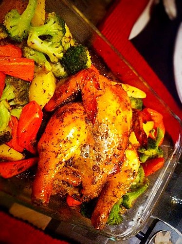 不少朋友來我家吃飯, 都很喜歡我這味香草焗雞. 不斷要我教他們做這味菜. 其實這道菜亦貫徹一向我的懶人做法, 十分簡單. 就在這裡為大家介紹一下. 材料: 雪藏雞 ----- 1隻 (雞鮮雞沒有那麼好吃) 西蘭花 ----- 半個 (切細) 紅蘿蔔 ----- 1條 (切細) 馬鈴薯 ----- 1個 (切細) 醃料; 意大利香草 ----- 3 湯匙 ( Italian mixed herbs) 牛油 ----- 2, 湯匙 豉油... 看全文 -