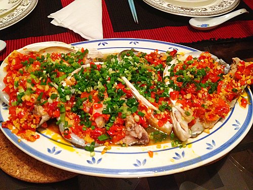 近年自己熱愛四川菜, 在朋友家試了這味" 剁椒魚頭 " 後, 不禁回家要馬上試. 材料: 大魚頭 ----- 2個 (開面) 剁椒醬 ----- 1瓶 (大約半湯碗) 蒜頭 ----- 1大個 (切碎) 薑 ----- 1湯匙 ((切碎) 蔥花 ----- 1棵 (切碎) 指天椒 ----- 2隻 (喜歡吃辣的可加, 不吃得太辣不用加) 調味: 鹽 ----- 半茶匙 生粉 -----... 看全文 -