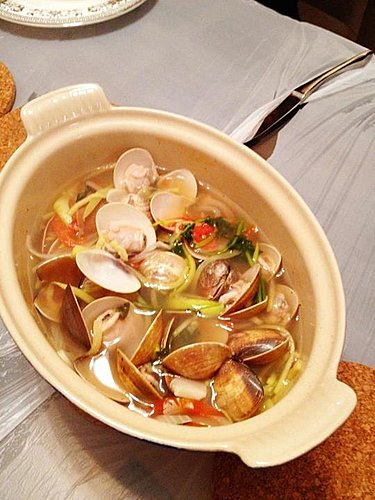今期是用" 酒蒸蛤蜊" , 而我亦有一拿手小菜叫" 清酒煮蜆" . 這個極容易的做法任何新手也可以試 ( 想當年偽煮婦小姐就極其喜歡). 就在這裡公開一下我的超簡單又好食又健康的食譜啦.... 材料: 蕃茄 ------ 半個切條 洋蔥 ------ 半個切條 芫茜 ------ 數棵切段 蒜頭 ------ 數粒切片 翠玉瓜 --- 半條切條 蛤蜊(蜆) ----- 三斤( 隨你喜歡多少) 清雞湯... 看全文 -