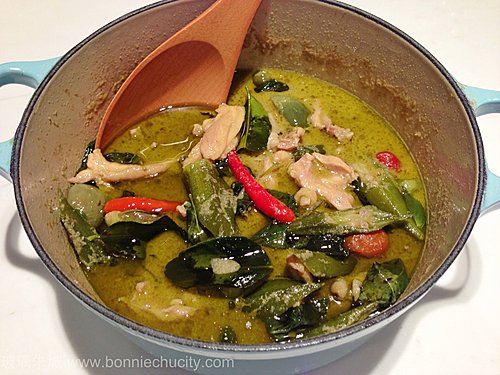 泰國菜不少港人也很喜歡,其實自己煮也是十分簡單.趁今次敗友鬼嫁在泰國帶了些泰式醬料回來給我們,今次便煮Thai cruise 給老外榮吃啦.就煮【泰式青咖哩雞粒】. 07年曾經參加泰國有名的 Cooking school 【Blue Elephant】的 cooking class ,就用他們的食譜為本來煮啦(當然我又自己加加減減). 材料: 雞肉 --- 250g 青咖哩醬 --- 1包(約2,3湯匙) 椰奶 ---... 看全文 -