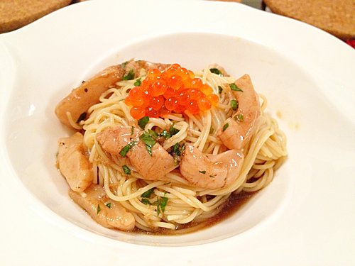 三文魚子帶子冷意粉食譜 Salmon roe Scallop cold pasta recipe
