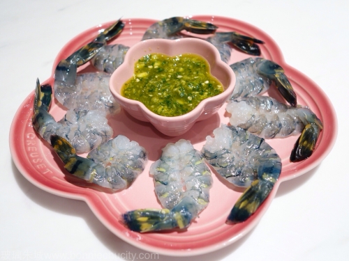 去泰國旅行時,我一定天天吃這「กุ้งแช่น้ําปลา Goong Chae Nam Bla」泰式生蝦!最吸引我的一定是它的泰式辣汁「น้ำจิ้ม Namjim」。其實有時在香港街市,也會見到這種游水海蝦!做法亦十分容易!當然最重要找一檔信得過的海鮮檔,確保食材衛生才可! 材料: 活海蝦---10-12隻(九節蝦最佳) 泰式汁料: 青辣椒---2隻(喜歡辣可以多加1,2隻)... 看全文 -