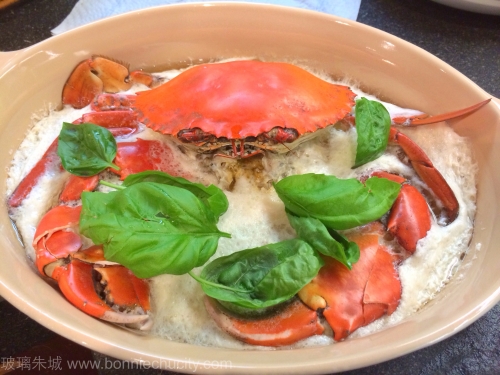 大家也知我是半個越南妹,從小媽咪便經常帶我吃這道越南名菜【啤酒蟹】!其實這道菜又簡單又易煮,又鮮味又開胃。 材料: 肉蟹/羔蟹 --- 1隻 啤酒 --- 1罐 蛋白 --- 2隻 鹽 --- 少許 九層塔 --- 幾片(也可以芫茜及羅勒) 1)蟹斬件洗淨,放入深碟中。蛋白加鹽打勻,再加入啤酒攪勻,倒入碟中。 2)放入蒸爐100度蒸15分鐘,或上火蒸12分鐘... 看全文 -