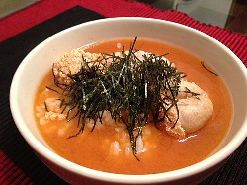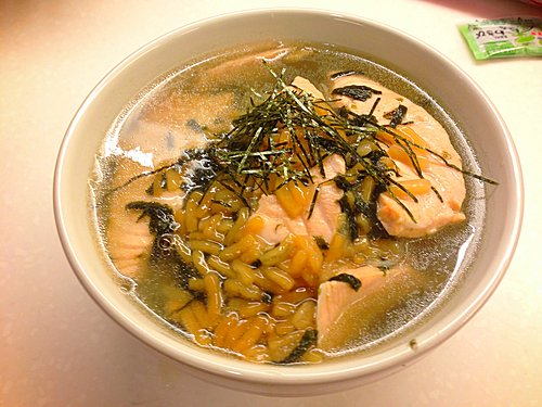 日本的" 茶漬飯 Ochazuke",是最多平民百姓食的一道菜。由於十分簡單方便,是很受歡迎的"家常便飯"。我自己本人亦常在家吃,去居酒屋也一定會叫的。做法亦很簡單。今次,就做"明太子茶漬飯"及"三文魚茶漬飯"。 材料: 三文魚 --- 幾片(你亦可以用鮭魚罐頭) 或 明太子 --- 一條(切開幾段) 紫菜 --- 少許 調味: 茶漬飯湯包 --- 2包(小碗飯可下一包) 或 鰹魚汁/粉+茶 &n...; 看全文 -