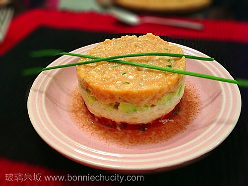 其實,一直想試這個頭盤很久.「三文魚他他」原來一點也不難,賣相又好.自己下喜歡的調味料加加減減便可.以下,是我自己的配方. 材料: 三文魚刺生 --- 500g(切小粒) 鮮蟹肉 --- 一盒 番茄 --- 2個(切小粒) 牛油果 --- 2個(切小粒) 三文魚調味: 刺生豉油 --- 1湯匙 柚子醋 --- 2湯匙 小青蔥 --- 1湯匙(切小粒 Chives) 法國洋蔥  ...; 看全文 -