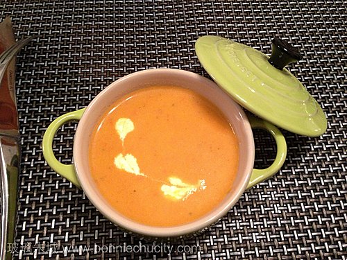 自己一向都喜歡清湯,但西湯很多時都是濃湯,忌廉湯.不太喜歡太Heavy的我對「忌廉湯」真的有點卻步.不過,今次做的這個【蕃茄忌廉湯】卻令我十分有驚喜.而且又簡單又快捷,一定不會令你失望. 材料(2人份量): 蕃茄 --- 5個(切粒) 法國洋蔥Shallot --- 2粒(切碎) 蒜 --- 1,2粒(切碎) 蕃茜 Parsley --- 少許(切碎) 雞湯 --- 2杯 忌廉 --- 1/2杯 1)炒香洋蔥及蒜 2)下蕃茄粒再炒... 看全文 -