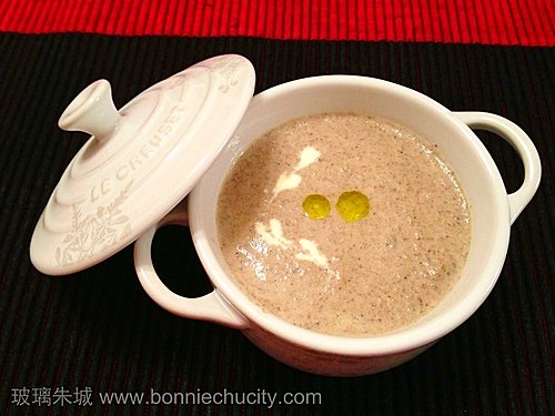 其實做西餐湯,都是一理通百理明.至從學做西餐後,發現跟本不是太難.西湯的大部份製作也是大同小異.先將材料炒香,再加入湯或忌廉煮一會再打均便成.以下,就為大家介紹一下這個蘑菇湯的做法. 4人份量 材料: 雜菇 --- 約2磅(切粒) 乾蔥 --- 3粒(切碎) 雞湯 --- 3杯 水 --- 1杯 忌廉 --- 3杯(如喜歡Creamy一點可放多一些) 牛油 --- 約20g 百里香Thyme --- 1茶匙 月桂葉Bay... 看全文 -