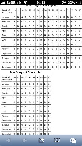 懷孕初期,又未夠期去照到BB性別時,真的令父母們很好奇。在網上找到這個英文版的【清宮生仔生女圖】,再跟多位已經生過B的好友對照一下,又真的準確啦。當然,大家只當是遊戲的心態去查,不要太過認真。計算方法:以上全部以農曆去計!先將你的虛歲(實齡加1)找出,再配你受精日子的農曆月份。便會得出結果。以我自己為例,受精時是38歲(老蚌生珠的高齡產婦啦),所以圖中便要選【39】,受精月份是2013年2月20日,算農曆是一月。結果39歲... 看全文 -