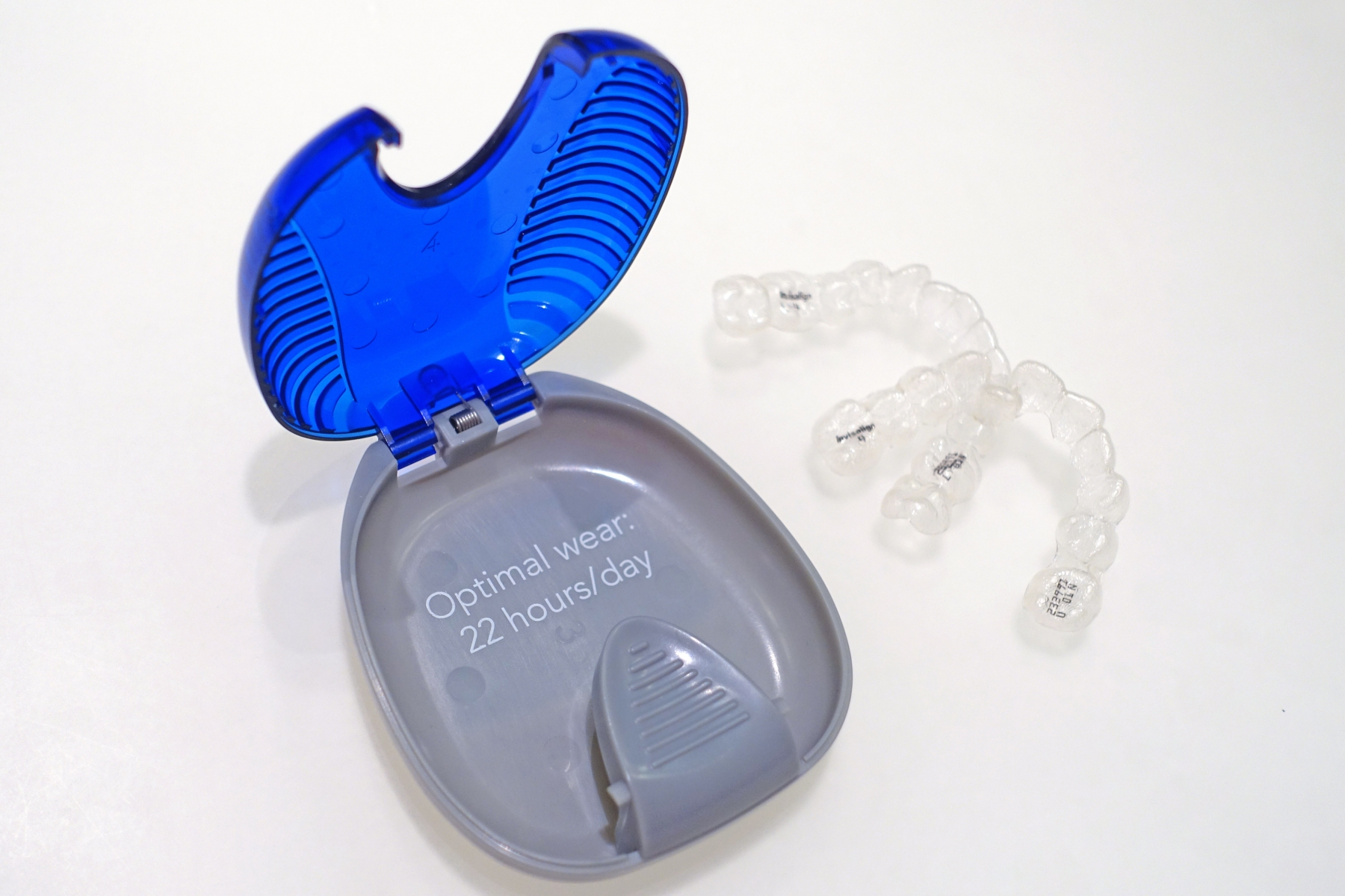 牙箍盒上用英文寫著每天理想是配戴22小時,