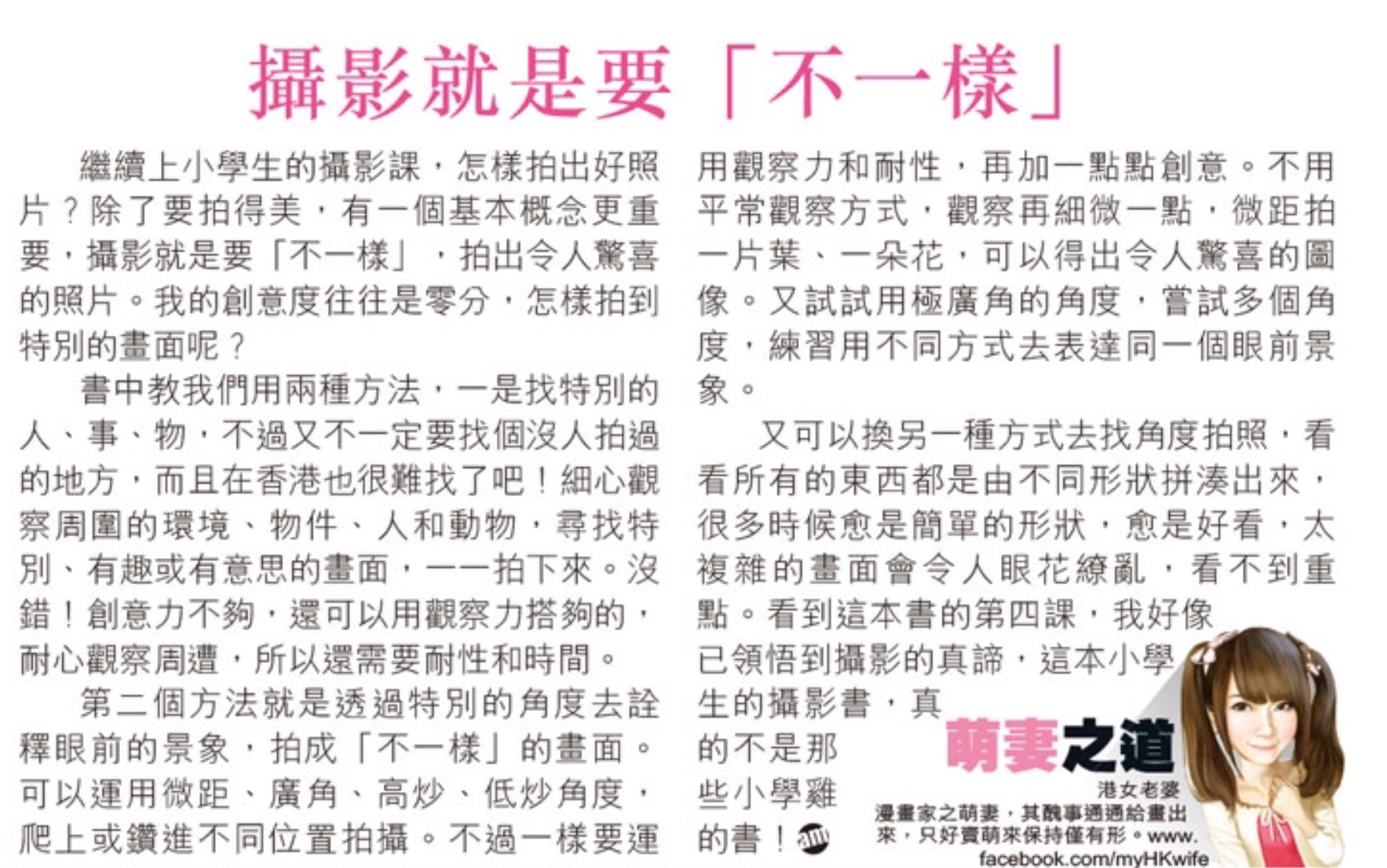 原文:http://www.am730.com.hk/column-311085 * 萌妻之道 - 逢周三於am730刊登... 看全文 -