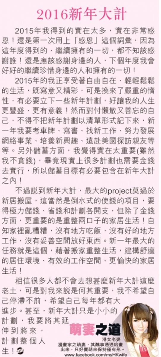 原文:http://www.am730.com.hk/column-298045 * 萌妻之道 - 逢周三於am730刊登... 看全文 -