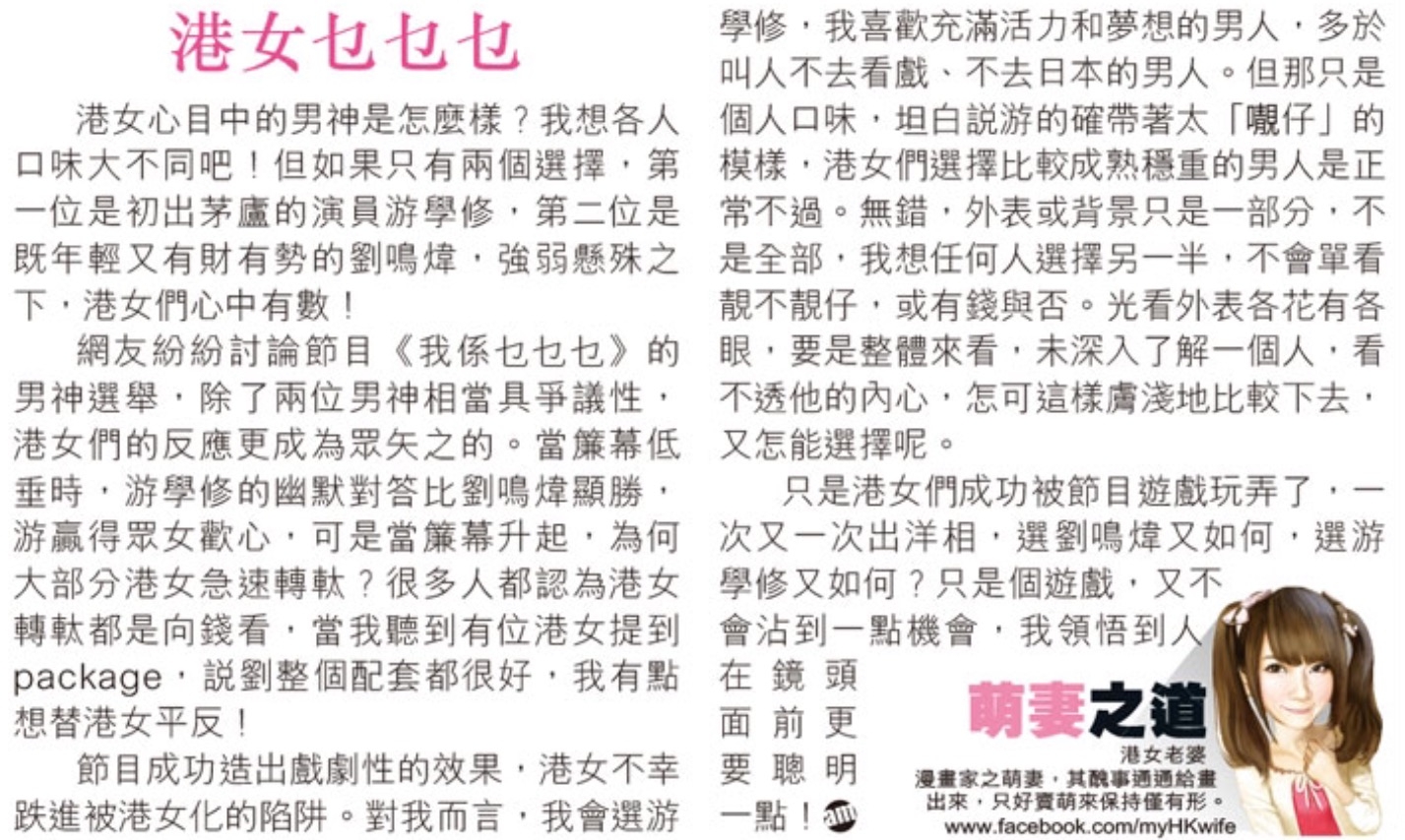 原文:http://www.am730.com.hk/column-304042 * 萌妻之道 - 逢周三於am730刊登... 看全文 -