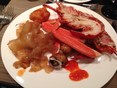 冷盤有長腳蟹,青口,麵包蟹,加菲蟹,龍蝦,花螺。好新鮮好味,龍蝦都夠大隻,長腳蟹腳我都食了很多。