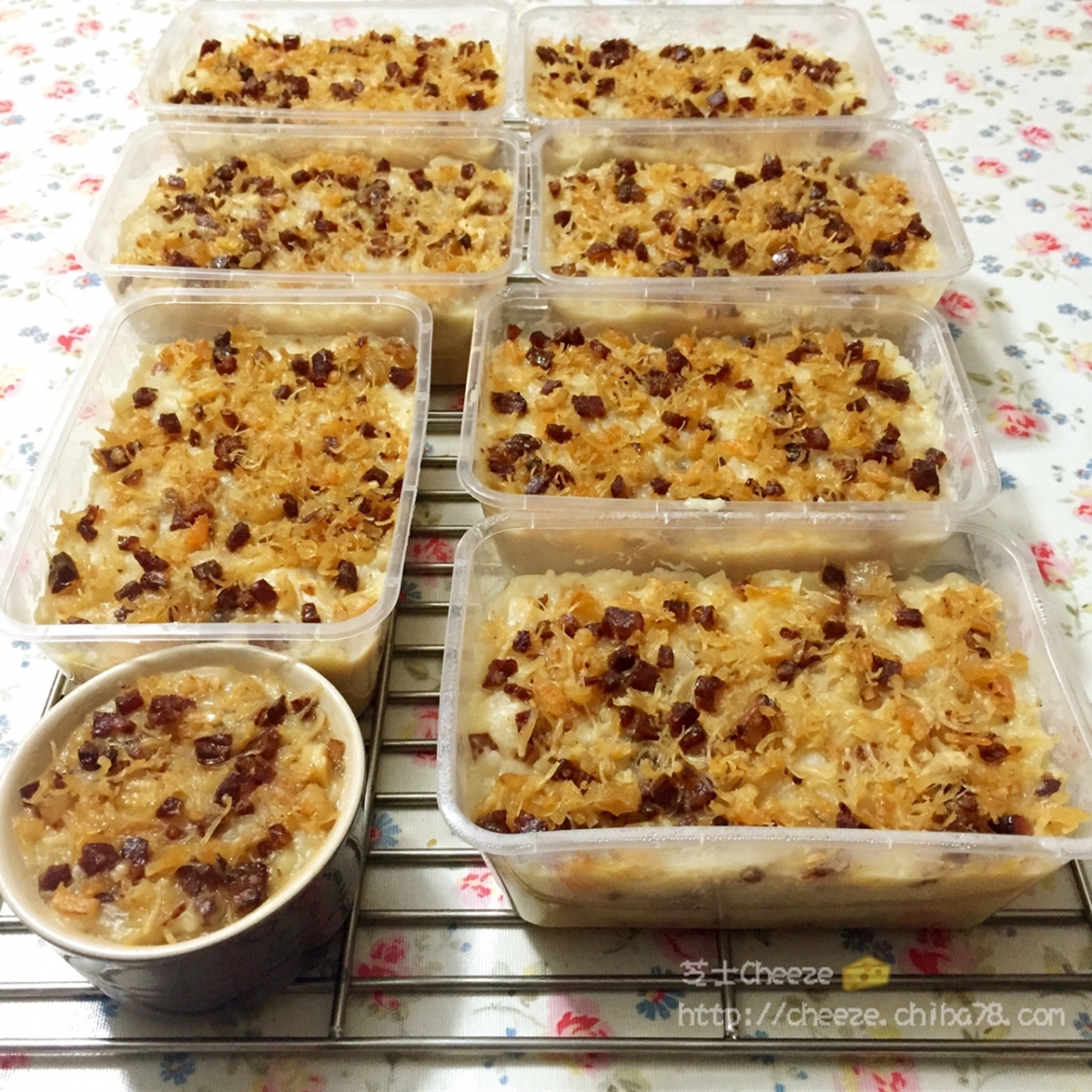以下的食譜我是沒有加入冬菇,因為加入冬菇做的蘿蔔糕需要在3日內吃完,所以我通常做來送禮的都不會加入冬菇,如果大家想吃有冬菇的蘿蔔糕我自己就會預每做一底糕大約用一至兩隻冬菇的。