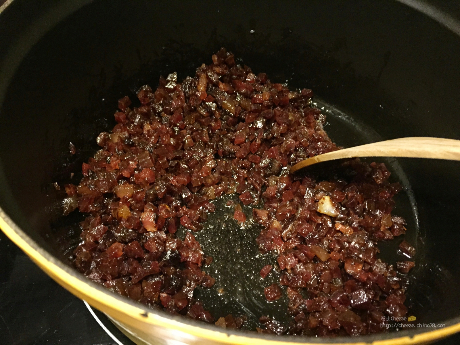 5. 先在鑊下油,加入臘腸及臘肉炒香;