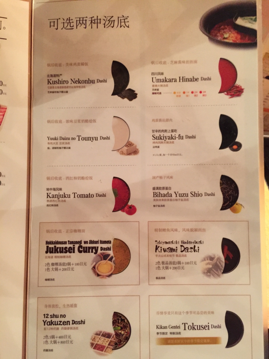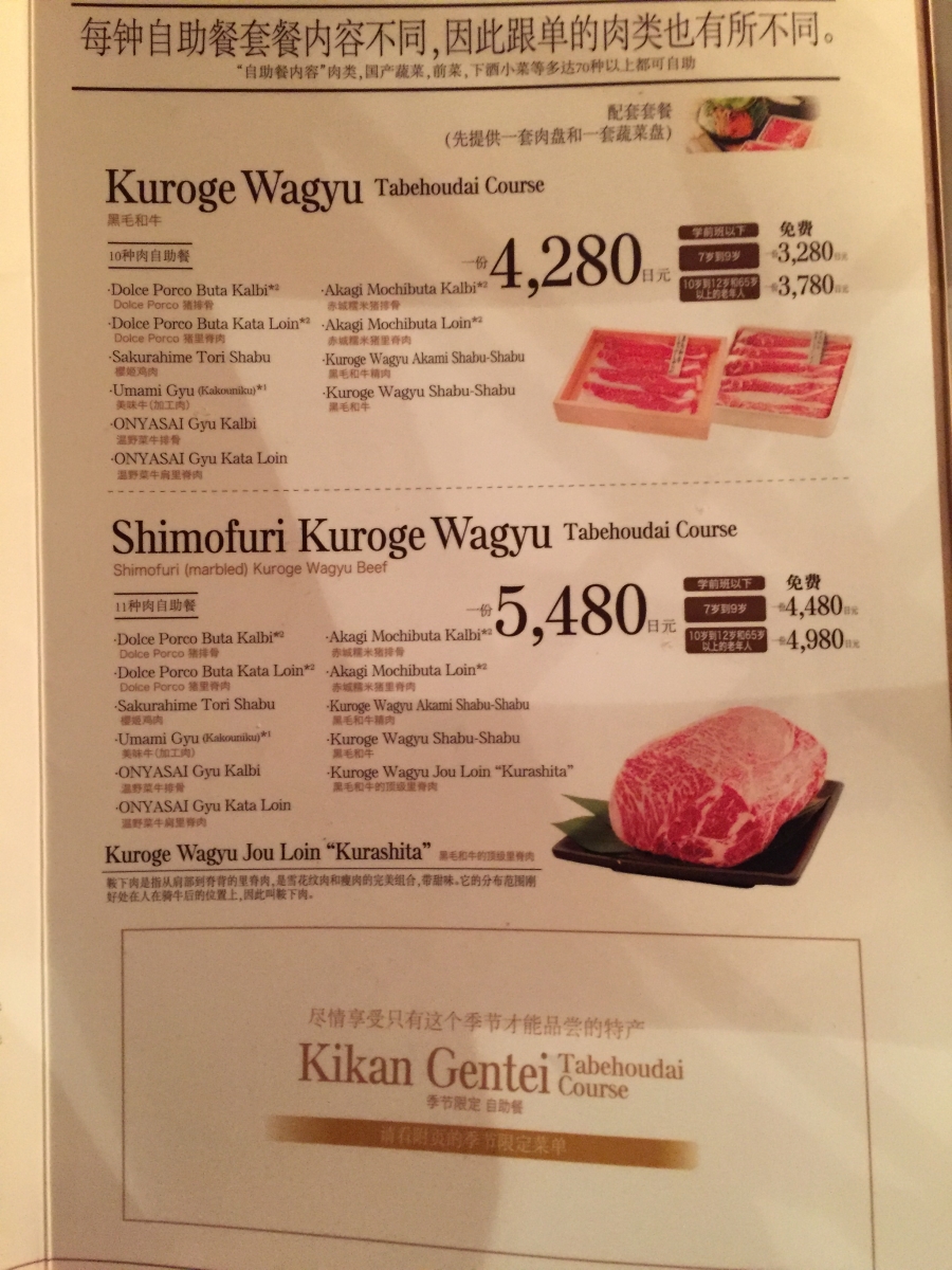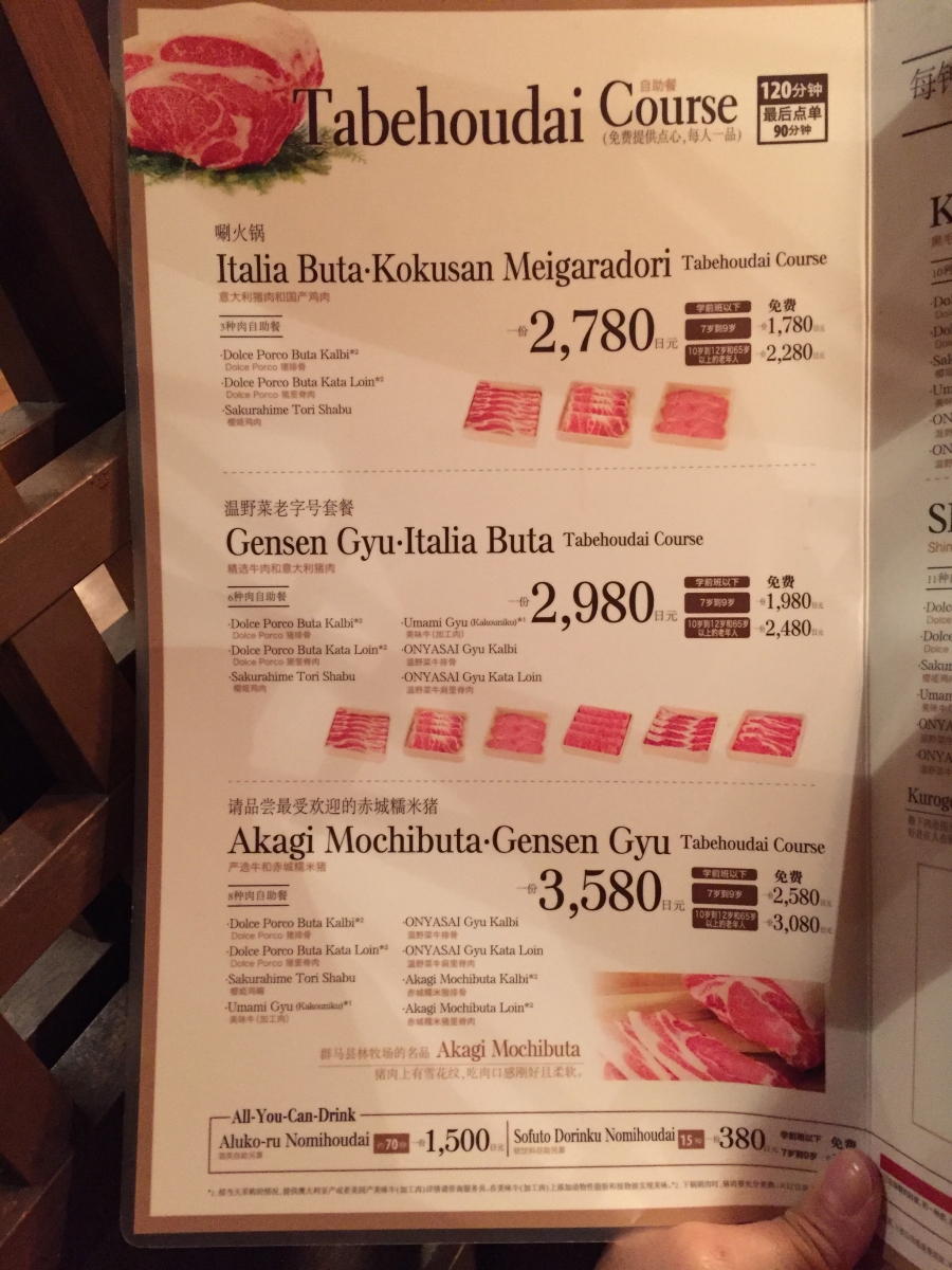 急不及待走進店內,目的當然是Shabu Shabu啦,其實店內就算是Shabu Shabu都有好多選擇,豐儉由人。我們第一日敗家敗得痛快,加上想嘆一下,就選了4,280yen那個放題吃啦!